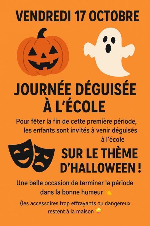 🎃 Journée déguisée à l’école – Vendredi 17 octobre 👻